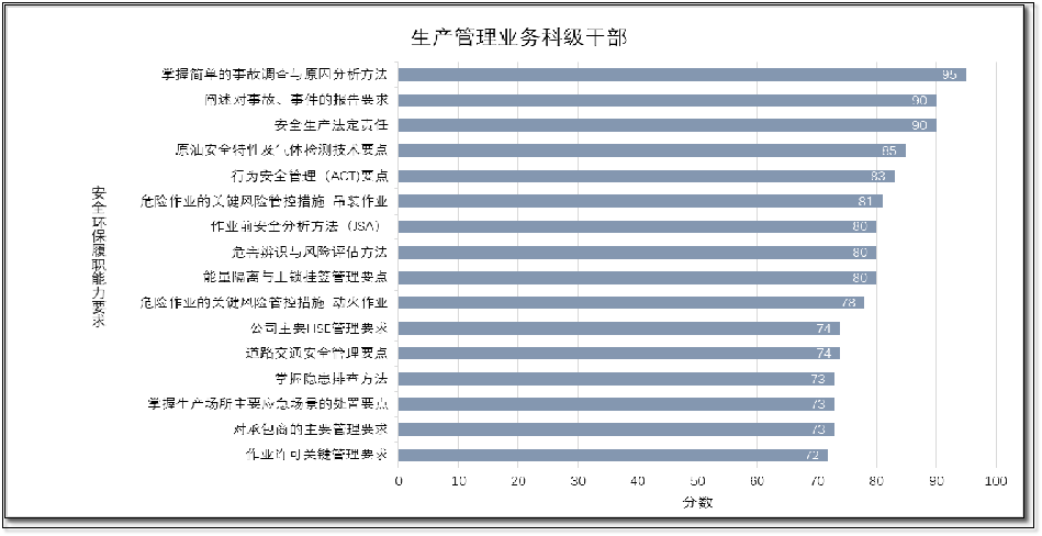 | 以“生產(chǎn)管理業(yè)務(wù)科技干部”為例,精準(zhǔn)掌握每類人員“安全履職能力”的強(qiáng)弱項(見下圖) | |||||||