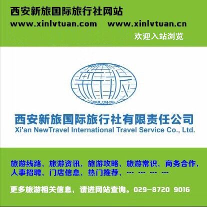 10、立足西安,服務(wù)全國。西安新旅國際旅行社位于西安市中心,本公司憑著良好的信譽、形象、務(wù)實的工作作風(fēng)和靈活的經(jīng)營方式,在競爭激烈的旅游市場中逐步發(fā)展,健康成長,并具有自身經(jīng)營的特色。同樣的價格比質(zhì)量;同樣的質(zhì)量比價格。打造最全旅游產(chǎn)品銷售商,讓游客一站式采購使我們的發(fā)展思路。公司遵循:以質(zhì)量求生存、以創(chuàng)新求發(fā)展、以市場為導(dǎo)向、以服務(wù)為宗旨的經(jīng)營理念,愿為游客提供全方位、多元化、高層次的服務(wù);愿和各界同仁精誠合作,共創(chuàng)美好!