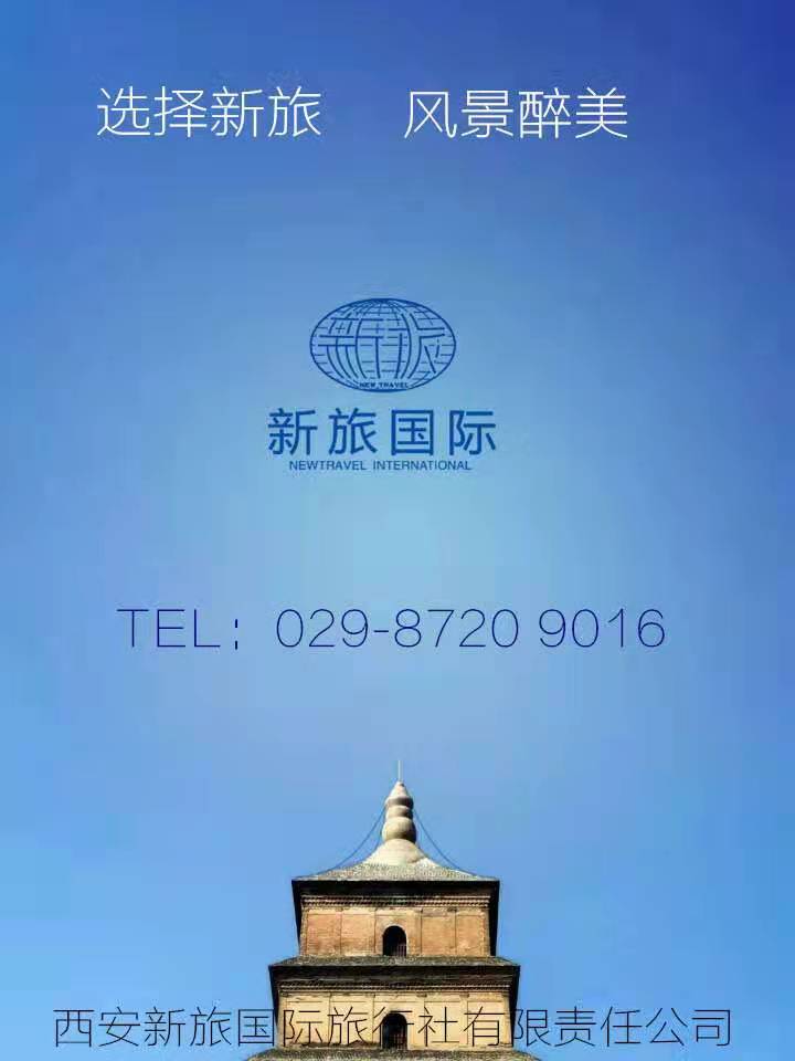 10、立足西安,服務(wù)全國。西安新旅國際旅行社位于西安市中心,本公司憑著良好的信譽(yù)、形象、務(wù)實(shí)的工作作風(fēng)和靈活的經(jīng)營方式,在競(jìng)爭(zhēng)激烈的旅游市場(chǎng)中逐步發(fā)展,健康成長,并具有自身經(jīng)營的特色。同樣的價(jià)格比質(zhì)量;同樣的質(zhì)量比價(jià)格。打造最全旅游產(chǎn)品銷售商,讓游客一站式采購使我們的發(fā)展思路。公司遵循:以質(zhì)量求生存、以創(chuàng)新求發(fā)展、以市場(chǎng)為導(dǎo)向、以服務(wù)為宗旨的經(jīng)營理念,愿為游客提供全方位、多元化、高層次的服務(wù);愿和各界同仁精誠合作,共創(chuàng)美好!