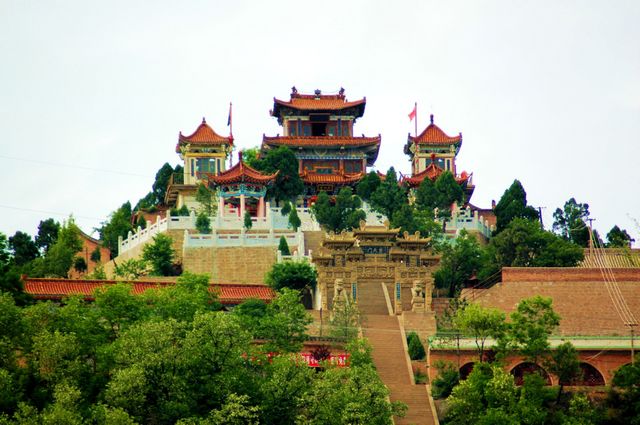 富縣太和山久負盛名,原名鳳凰山,發(fā)源于白云山山脈,自北向南蜿蜒數仟里伸展到富縣城北。太和山山勢陡峭,氣勢雄偉。山之左右兩側,極對稱的伸出兩座側峰,猶如兩條蒼龍,與挺拔渾圓的太和山山峰形成二龍戲珠之勢,山下五條河流、五條道路在山前穿梭而過,形成五水、五路相交之勢,富縣古稱“五交城”,即得名于此。更有趣的是,站在山頂俯瞰,周圍東山、西山、柏山、駱駝山四座山的山峰不但低而且皆面朝太和山,形成四山朝拜的景象。